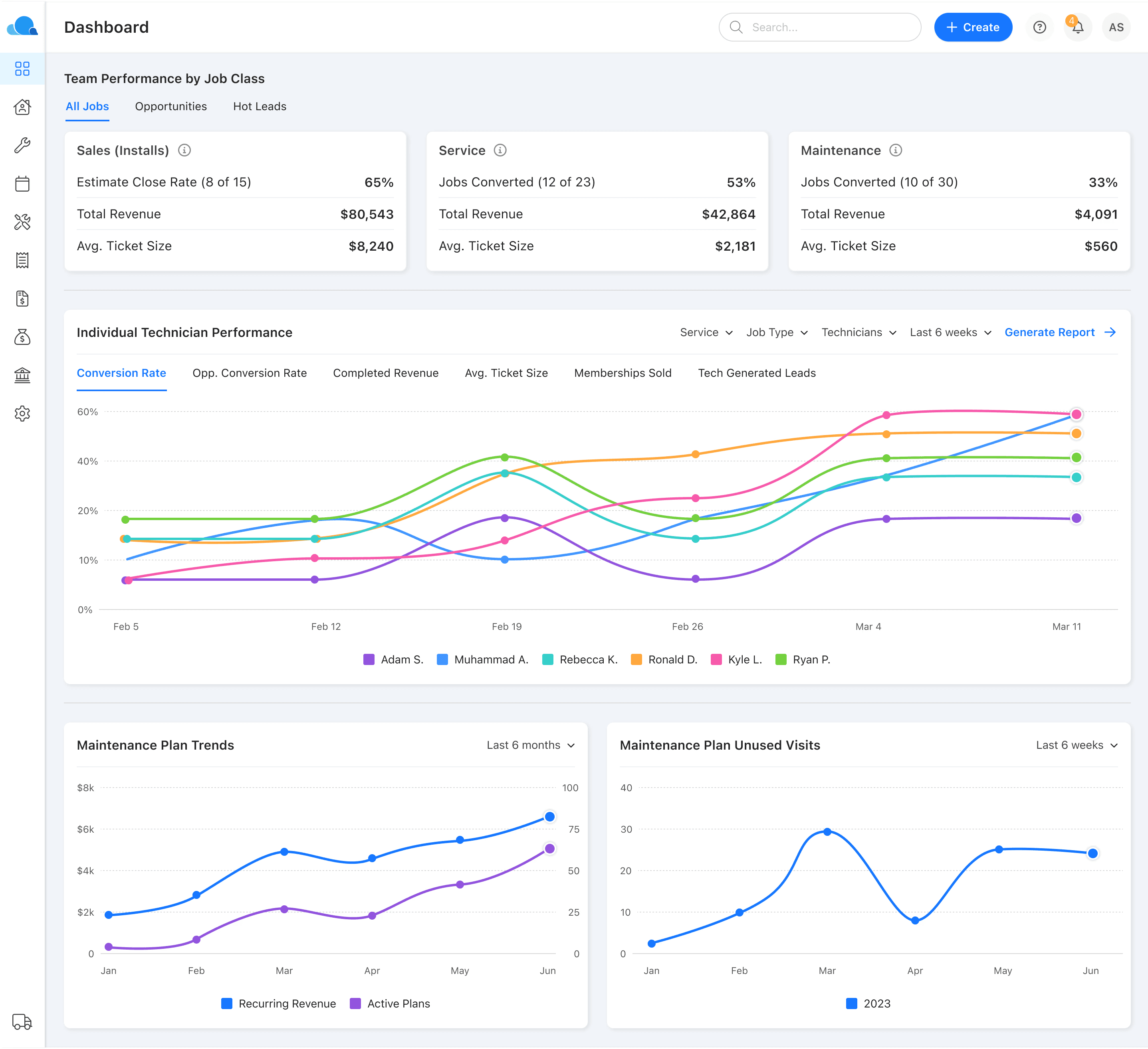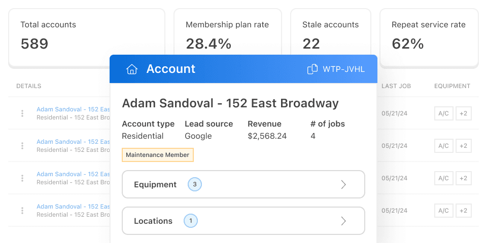 Gain visibility into stale accounts, membership rates, and repeat service rates.