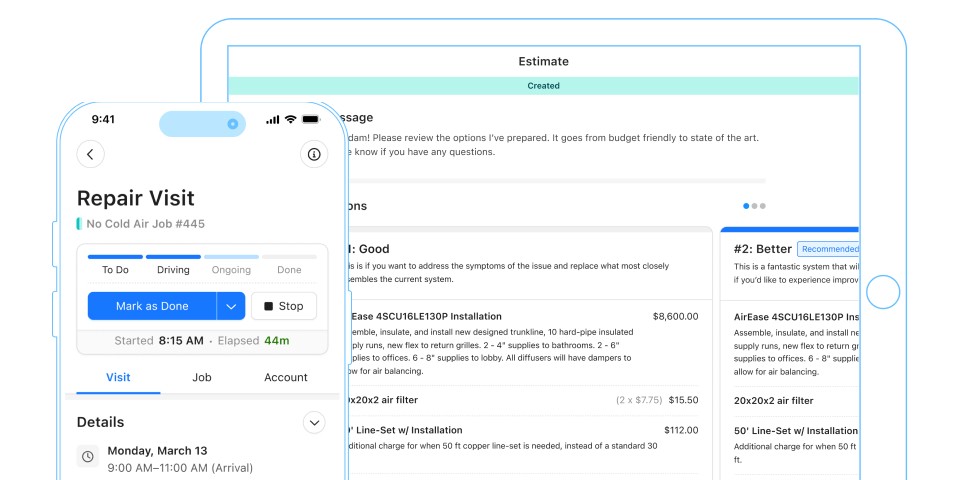 Access key job info on the go, close more deals, and ensure consistent, top-quality service.