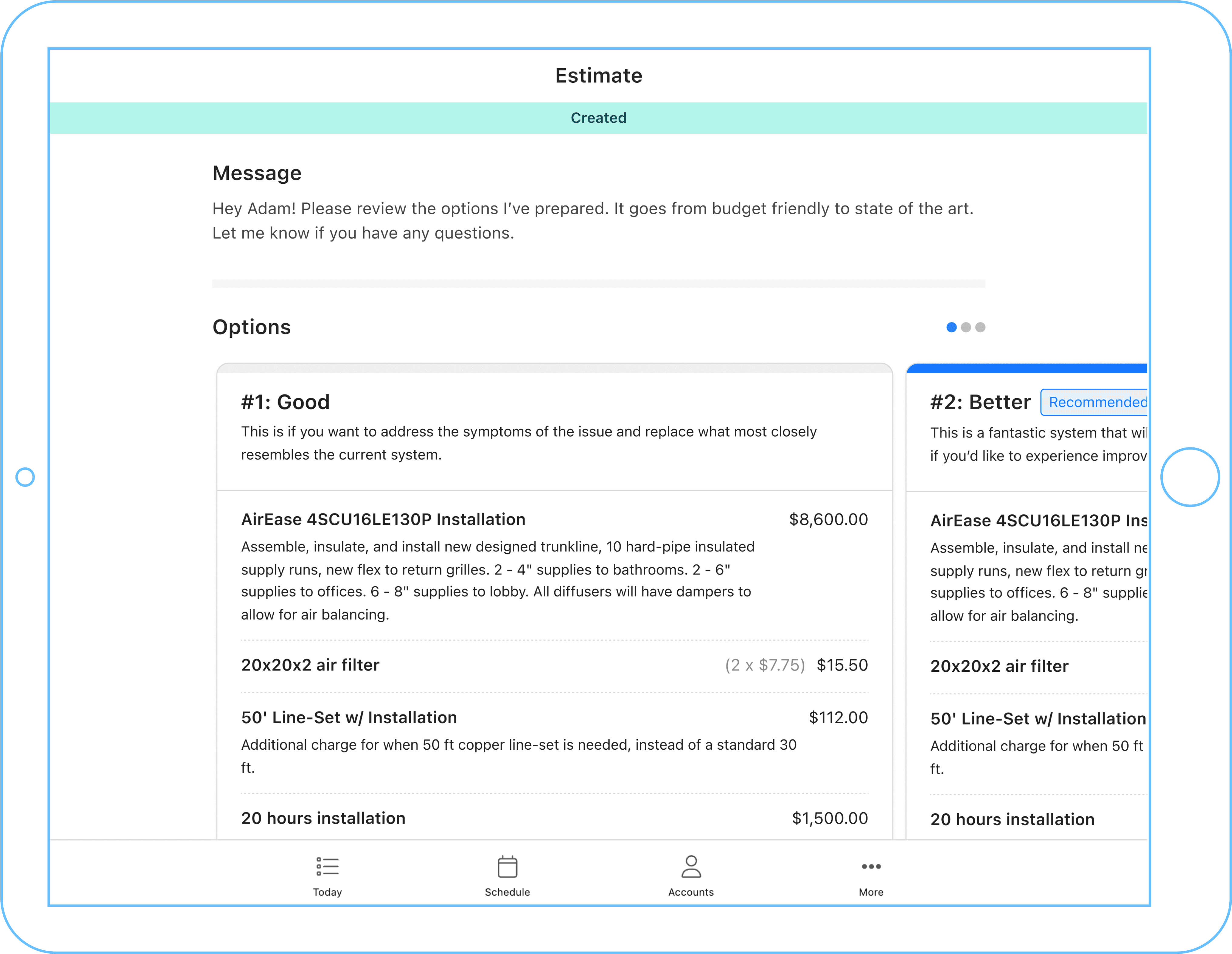 Close more deals with good-better-best estimates, and convert them into Invoices.