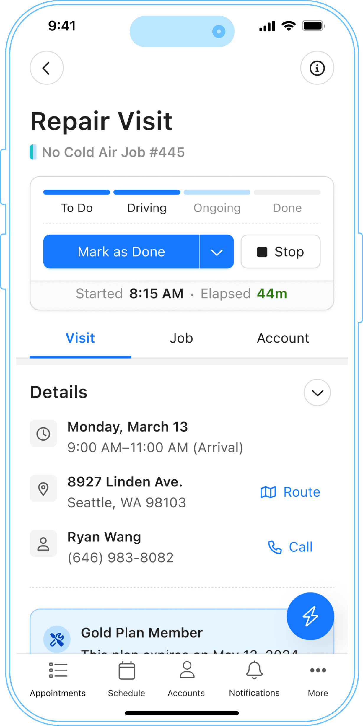Access job details, service history, scheduling, and more from any device.