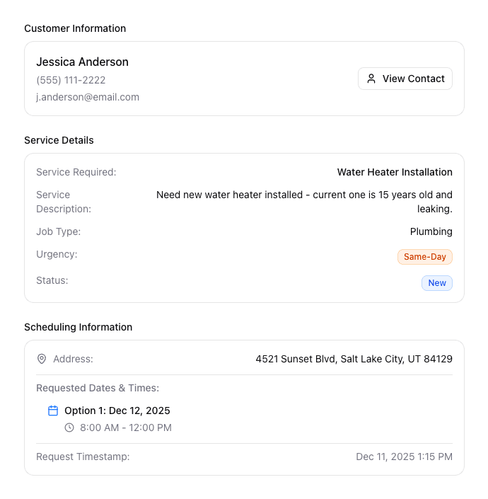 Many homeowners prefer submitting a booking request instead of calling. Breezy makes it simple.