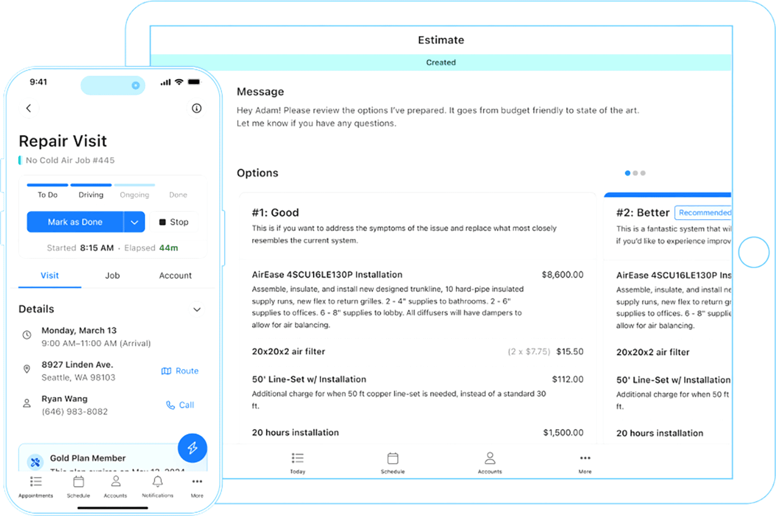 Access key job info on the go, close more deals, and ensure consistent, top-quality service.