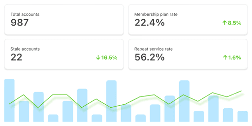 Gain visibility into stale accounts, membership rates, and repeat service rates.