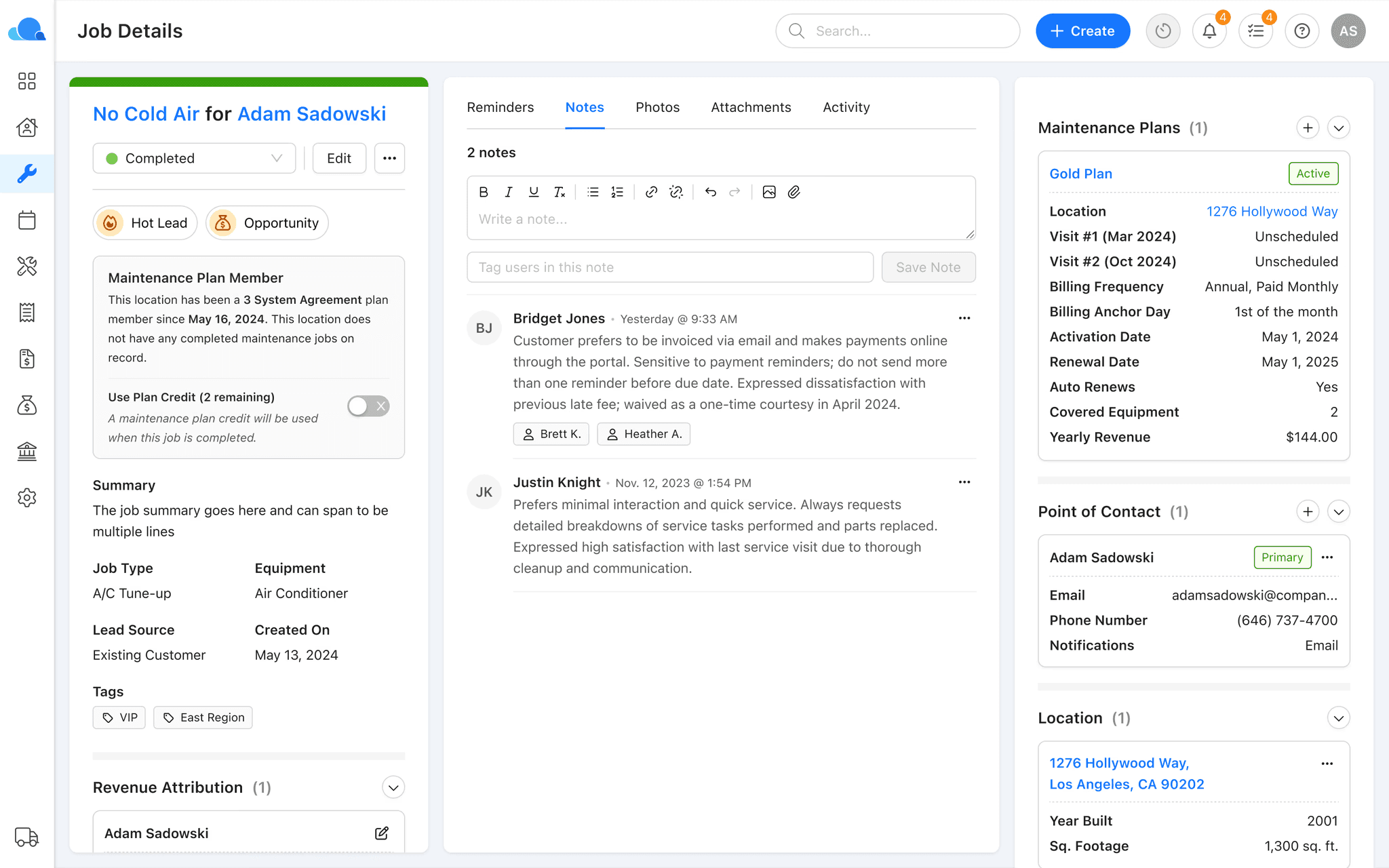 Keep customers engaged with job follow-ups and preemptive maintenance scheduling.