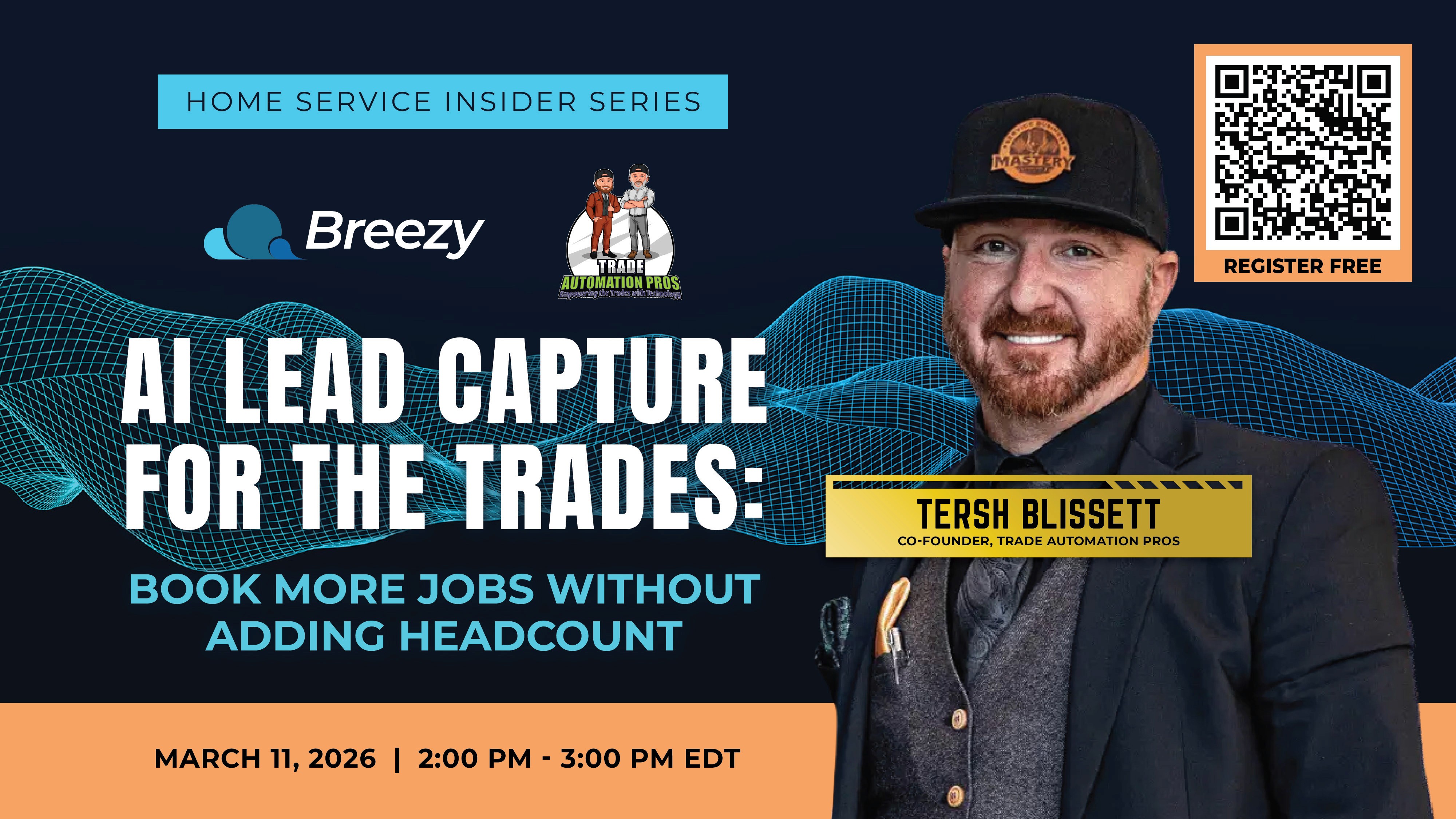Join us for the Breezy HVAC Insider Series masterclass, “AI Lead Capture for the Trades: Book More Jobs Without Adding Headcount,” on March 11 at 2 PM EST with Tersh Blissett, founder of Trade Automation Pros. In this session, we’ll explore how AI-powered lead capture and smart automation are changing the way HVAC, plumbing, and electrical companies convert inquiries into booked jobs. Tersh will share practical insights from the field, and we’ll officially introduce Breezy’s new AI lead capture tools designed to help contractors capture every opportunity without increasing payroll.